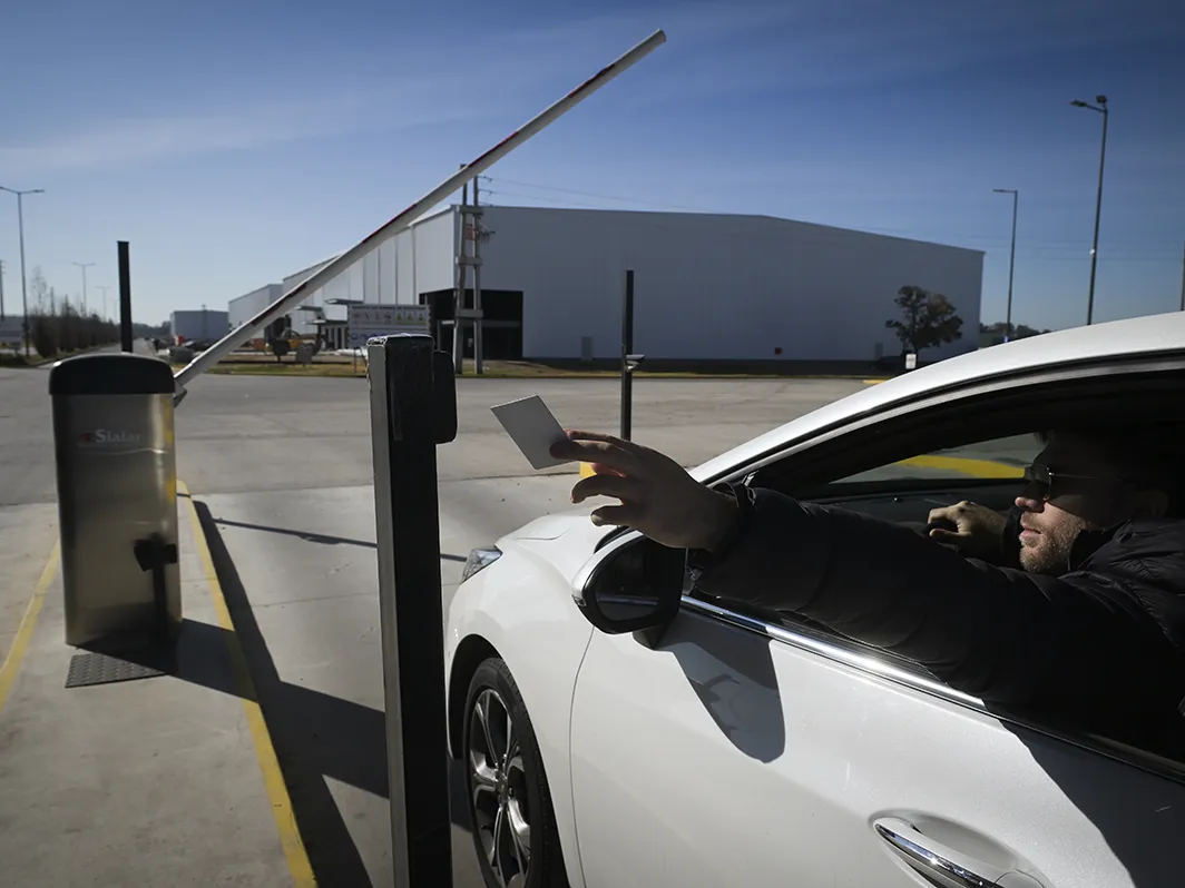 Acceso principal de gran escala, con 8 carriles operativos pensado para alto flujo de camiones y vehículos.